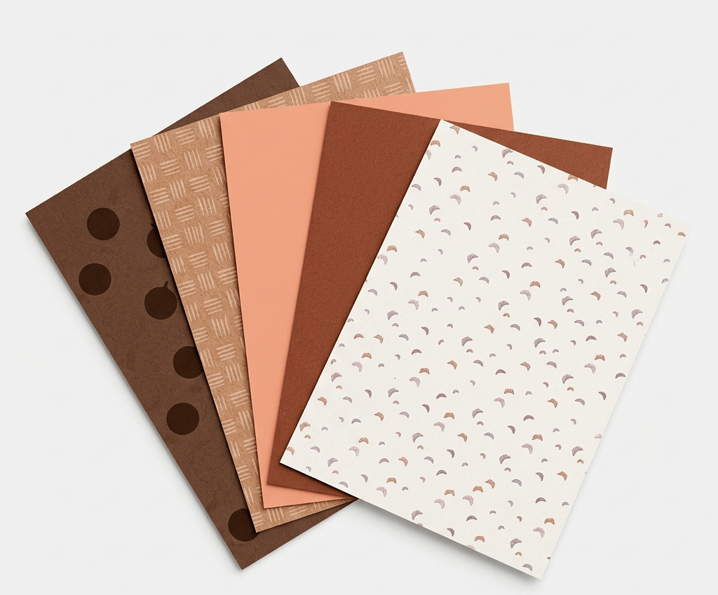 A set of 5 decorative scrapbooking papers in a rectangular 8.2″ x 6.1″ format. These sheets have a card-like weight that prevents folding when used with glue or for paper crafts.